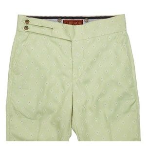 Mens Gurkha Pants Green Geometric Slim High Waist Flat Front Dress Trousers 32