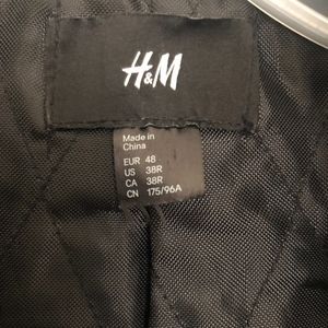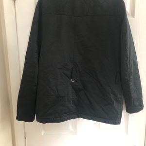 GENTLY WORN!!! Utility Jacket, Black!!! Jacket in woven cotton-blend fabric. Stand-up collar with decorative zip, zip at front with wind flap and snap fasteners, chest and patch pockets with flap and button, and concealed pocket with zip. Lined.