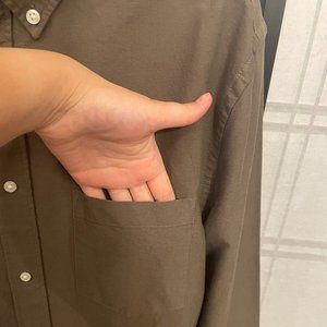 Men's H&M cotton button-down shirt in regular fit. Shirt has spare buttons located on the inside tag. Shirt is in a khaki green color. Hardly worn and in great condition. Size Men's Large.