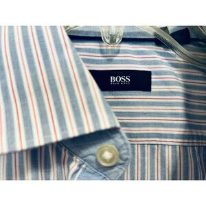Men's HUGO BOSS Cotton Purple White Stripes Long Sleeve Button Down Shirt Size 1