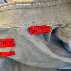 Men’s HUGO BOSS blue chambray dress shirt. Slim fit 17/43 and 34/35.