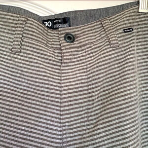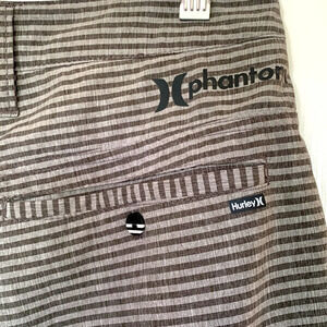 Never worn mens HURLEY BOARD SHORTS PHANTOM gray horizontal striped unlined size 30 waist 9” inseam perfect condition