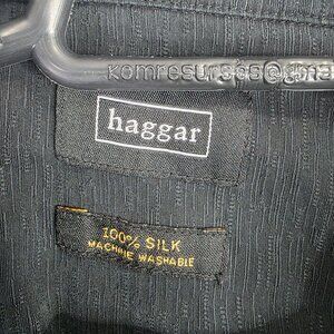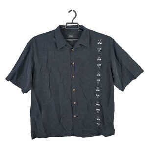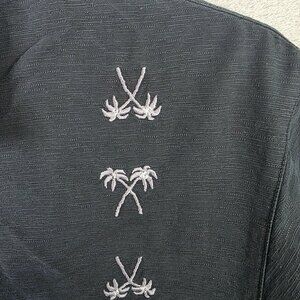 Mens Haggar Black 100% Silk Shirt Palm Tree Embroidery Short Sleeve Button Up XL
