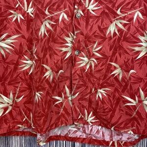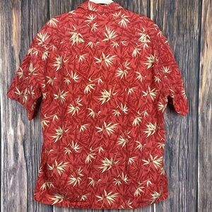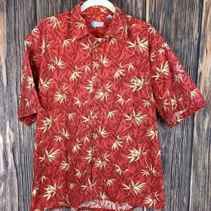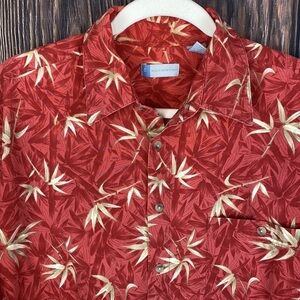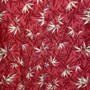 Men’s Half Moon Bay Cotton Red Button Down With Bamboo Leaf Pattern- Size Lg