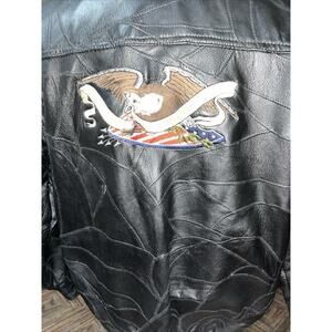 Men’s Harley Davidson Eagle Flag Embroidered Black Leather Jacket Large