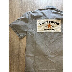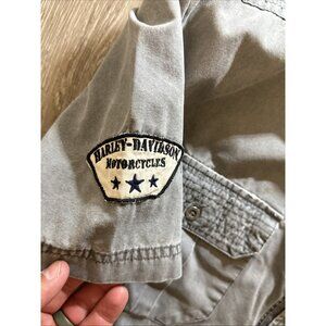 Mens Harley Davidson Gray Embroidered Patched Military Top Gun Button Shirt L