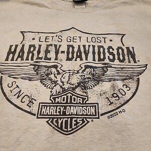 The product is a men's Harley Davidson T-shirt in size 2XL, featuring the Barnett El Paso, TX design in gray color for the year 2022. This collectible item is part of the transportation category, specifically related to motorcycles and American culture, showcasing the iconic Harley-Davidson brand. The shirt is a tangible piece that serves as a statement of style and a nod to the nostalgia and heritage associated with Harley-Davidson motorcycles.