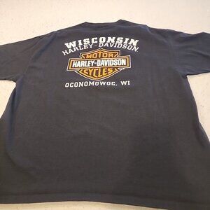 Mens Harley Davidson T-shirt 2X Black Oconomoeoc, WI Eagle Cotton