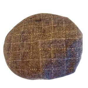 This is a vintage Mizen Head cap made of 100% wool tweed in a plaid pattern.