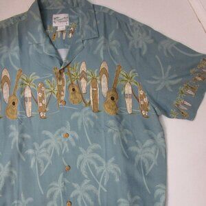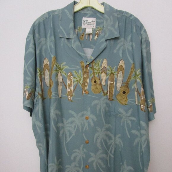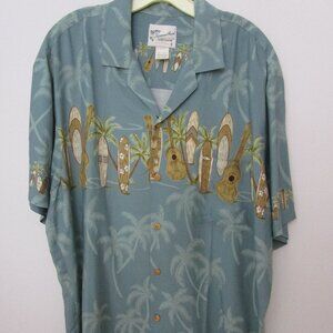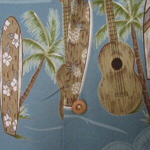 Mens Hawaii Surfboard Coconut Button Front Shirt Tropical Tiki C