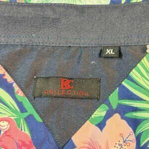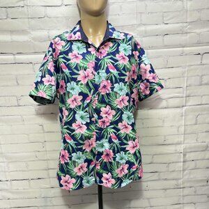 Men's Hawaiian Floral Button-Up Shirt – Navy with Parrots & Hibiscus | Size XL
