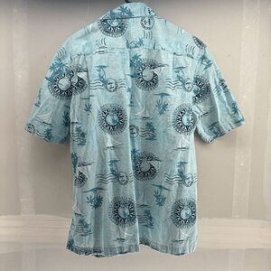 Mens Hawaiian Large Palm Trees Compass Short Sleeve Button Up Casual Shirt