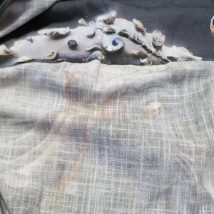 Men’s casual button shirt, collarless, cotton blend material, detailed octopus print, excellent condition, new, never worn. Dimensions: Widest part of the collar, 8.5”, shoulder, 8 ¼”, arm, 9”, chest, 26 ½”: Size 2 XL. If you have any questions, please do NOT hesitate to ask.