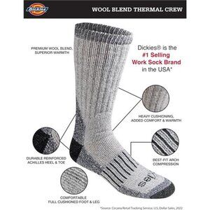 Engineered with premium, moisture control yarns to provide superior warmth and comfort. Dickies delivers the right work socks for every worker at every job. Designed for feet that require comfort, durability, and quality at all times. We construct socks that provide features that are purpose-built. Dickies® delivers the most complete work sock solution – covering more consumer needs with more products, in more categories than any other Work line. *Reciprocated heel and toe for superior fit and comfort