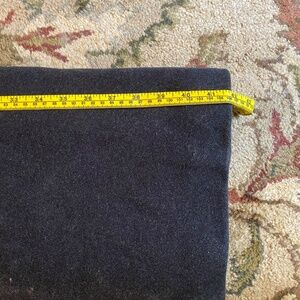 Charcoal-black 100% wool with polyester lining. Hand-made by a tailor in India. Measures approx. 42" in length from shoulder to hem, and approx. 21" from shoulder to shoulder laying flat. Excellent used condition with some minor wear like pilling near hem.
