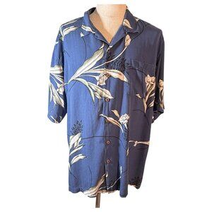 Mens Hilo Hattie Hawaiian Shirt Silk Blue Floral Button-Up Size 2XL Short Sleeve