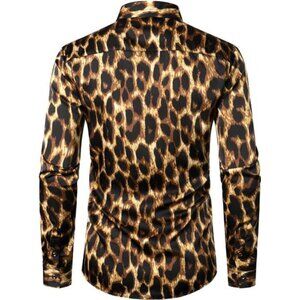 Men's Hipster Printed Slim Fit Long Sleeve Button Up Satin Dress Shirts