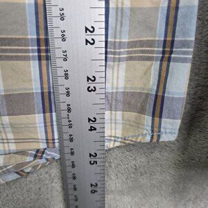Mens Hollister Co Western Style Tan Blue Plaid Shirt Pearl Snap Button Up Size S