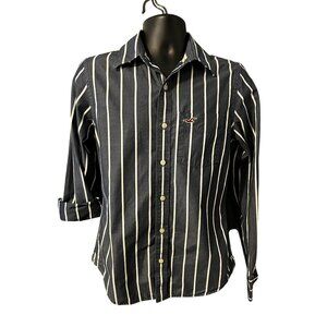 Mens Hollister Navy & White Striped Long Sleeve Button-Up Shirt Small 100% Cotto