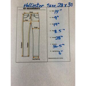 These Men's Hollister Skinny Fit Denim Jeans, size 28/30, offer the perfect blend of style and comfort. The dark wash, slim straight cut, and epic flex feature give a smart and modern look.