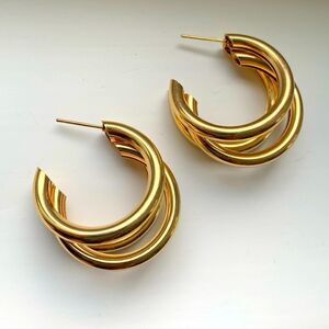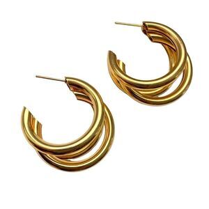 TAGS: unisex men’s boy’s women’s designer triple hoop trio hollow hoops triple threat lexi tri hoop sahira boho chic bohemian vintage retro classic classy mid sized three hoop earrings chunky gold tone minimal minimalist statement ultrafine michaela elegant stylish gift present modern contemporary sophisticated