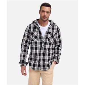 Mens Hooded Flannel Shirts Hoodie Black Grey