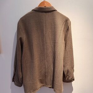 Elevate your style with this classic houndstooth shirt jacket. Perfect for layering, this jacket offers a sophisticated look with its timeless pattern. Ideal for any casual or semi-formal occasion.
