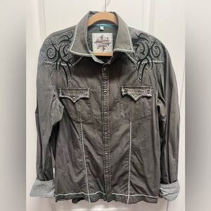 Men's House of Lords Gray Shirt with Black Embroidery Large