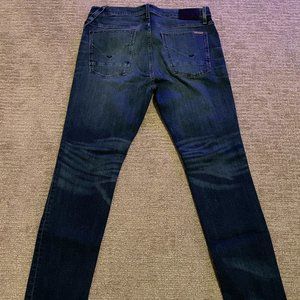 I am 6'2" and 180lbs; the length and slim-cut is great but the waist is too big for me.