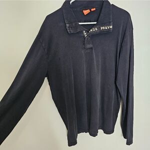 Mens Black Hugo Boss Long Sleeve Polo Tee Shirt. Size XXL. Like New Condition.