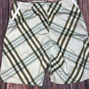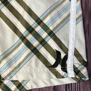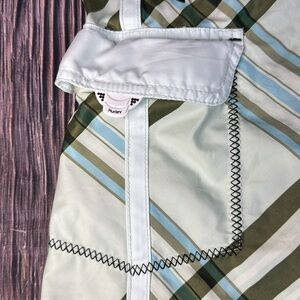 These are in great condition. They are a mint green with olive green and blue lines. There is a water resistant pocket protector.