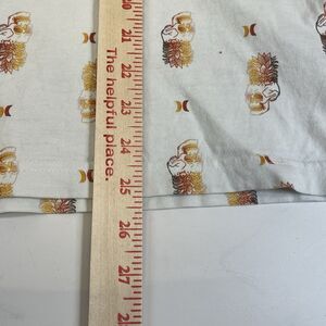 Elevate your casual wear with the Men's Hurley Pineapple Skulls All Over Print White T-Shirt in size Large. This eye-catching tee features a vibrant graphic print that boasts a playful blend of pineapple and skull motifs, short sleeves and a comfortable crew neck, perfect for a relaxed day at the beach or a casual skate session. Crafted from soft cotton knit fabric, this T-shirt provides a breathable fit that's ideal for everyday wear. Whether you're hitting the surf or the streets, this Hurley tee is sure to make a statement. NOTE: SEE PHOTOS FOR MEASUREMENTS. SIZE IS LARGE BUT LOOKS MORE LIKE A MED.