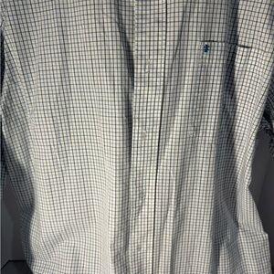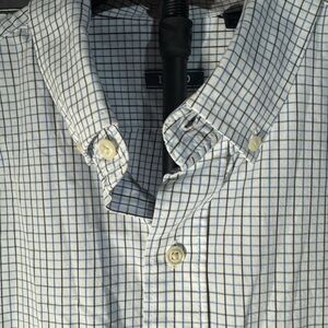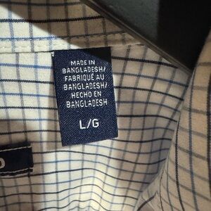 Men's IZOD Blue Long Sleeve Checkered Dress Shirt Size Large 100% Cotton
