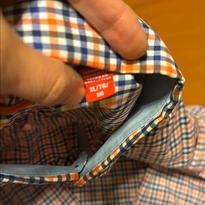 Men's IZOD Orange and Blue Checkered Long Sleeve Button Shirt Size XL