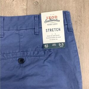 Men's IZOD Saltwater Blue 42 XL Khakis Chino Shorts Cotton Twill Stretch NWT
