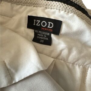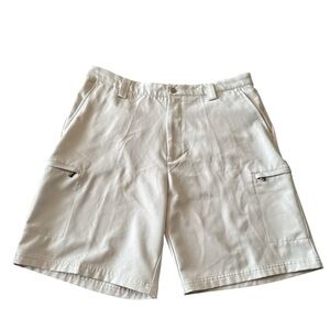 Men’s IZOD XFG Shorts Light Beige Zip Pockets Chino Flat Front