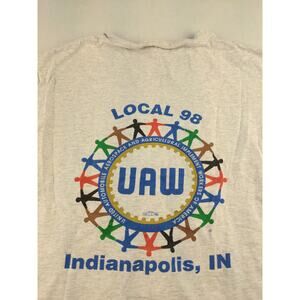 Mens Indianapolis UAW Auto Union Local 98 T Shirt Size M White 2 Sided