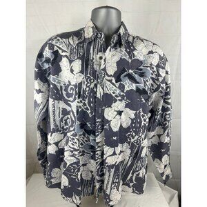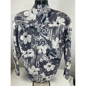 Men’s International View Long Sleeve Hawaiian Button Up Shirt Size Medium Black