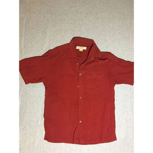 Mens Island Republic Button Up Size Medium Silk Red Dark Casual Basic Classic