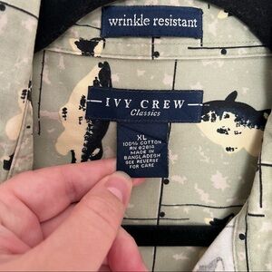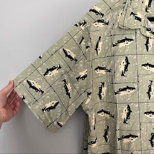 Men’s Ivy Crew green fish printed button from short sleeve tee size XL
