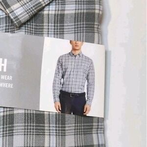 Mens Izod Button Up Dress Shirt, XL Gray Plaid