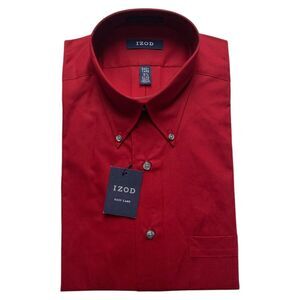 Mens Izod Dress Shirts Button Down Regular Fit Black Red Size Medium 15.5 32/33