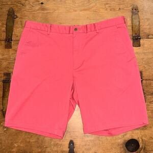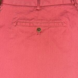 Size 36 Salmon Inseam 9.5” Flat from button and zipper closure 2 front zipper pockets and back button closure