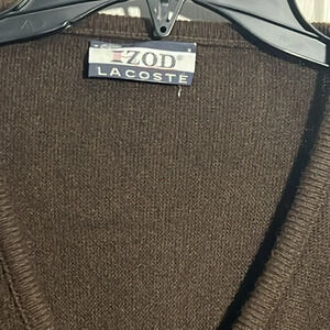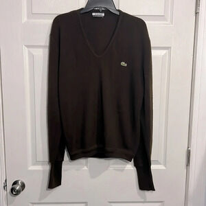 Mens Izod Lacoste Vintage Brown Pullover V-Neck Sweater - Size 2XL. Size and Content label missing. PTP: 25”