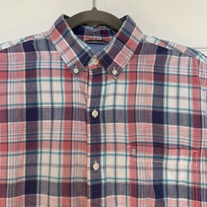 Men’s Izod Saltwater Relaxed Classics Pink/Blue Plaid Button-Down Shirt Size S