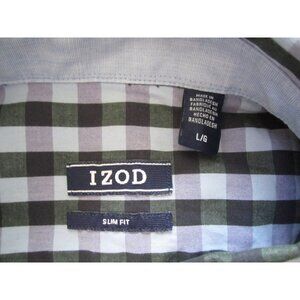 Men's Izod Slim Fit Button 100% Cotton Plaid Long Sleeve Shirt Sz L (MT645)