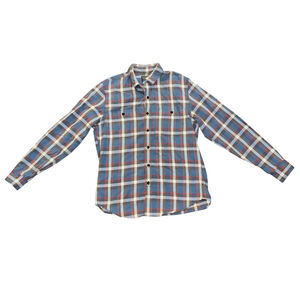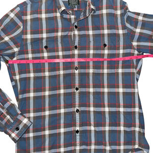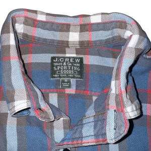 Men's J. Crew Button Flannel Down Shirt Size M Blue Plaid Navy red preppy