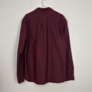 Men’s J Crew Factory Burgundy Garment Dyed Slim Untucked Oxford Shirt. Size XXL. New with tags. No stains. 100% Cotton. Machine washable. Button down shirt with button down collar. Armpit to Pit measures 23 inches. Total length 30 inches. Comes from a smoke free home.