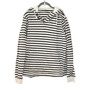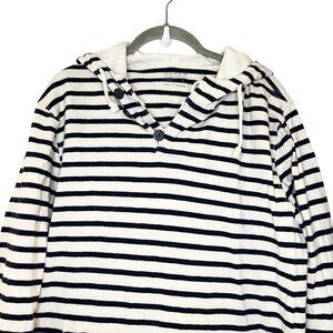 Mens J Crew Sweater Navy Blue Striped Hoodie Pullover Sweatshirt Nautical 2011 L