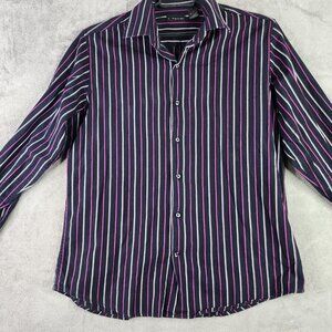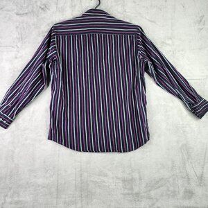 Mens J Ferrar Shirt Button Up Long Sleeve Black Pink Striped Large 16-16.5